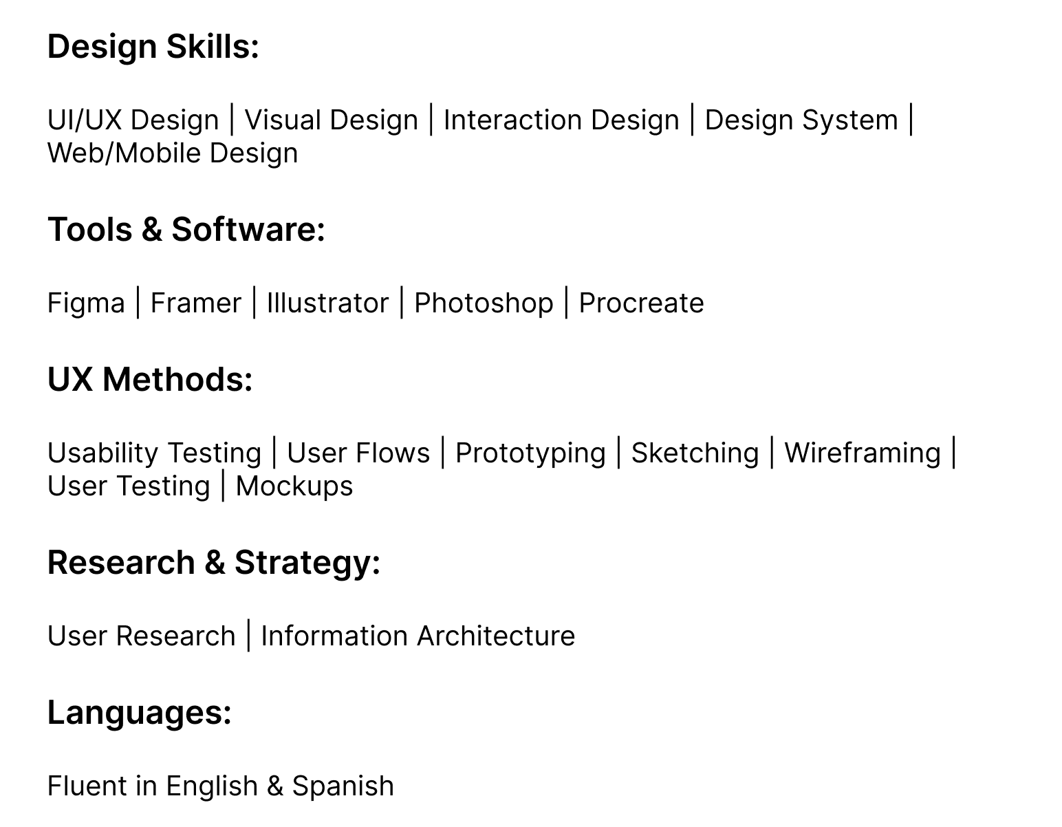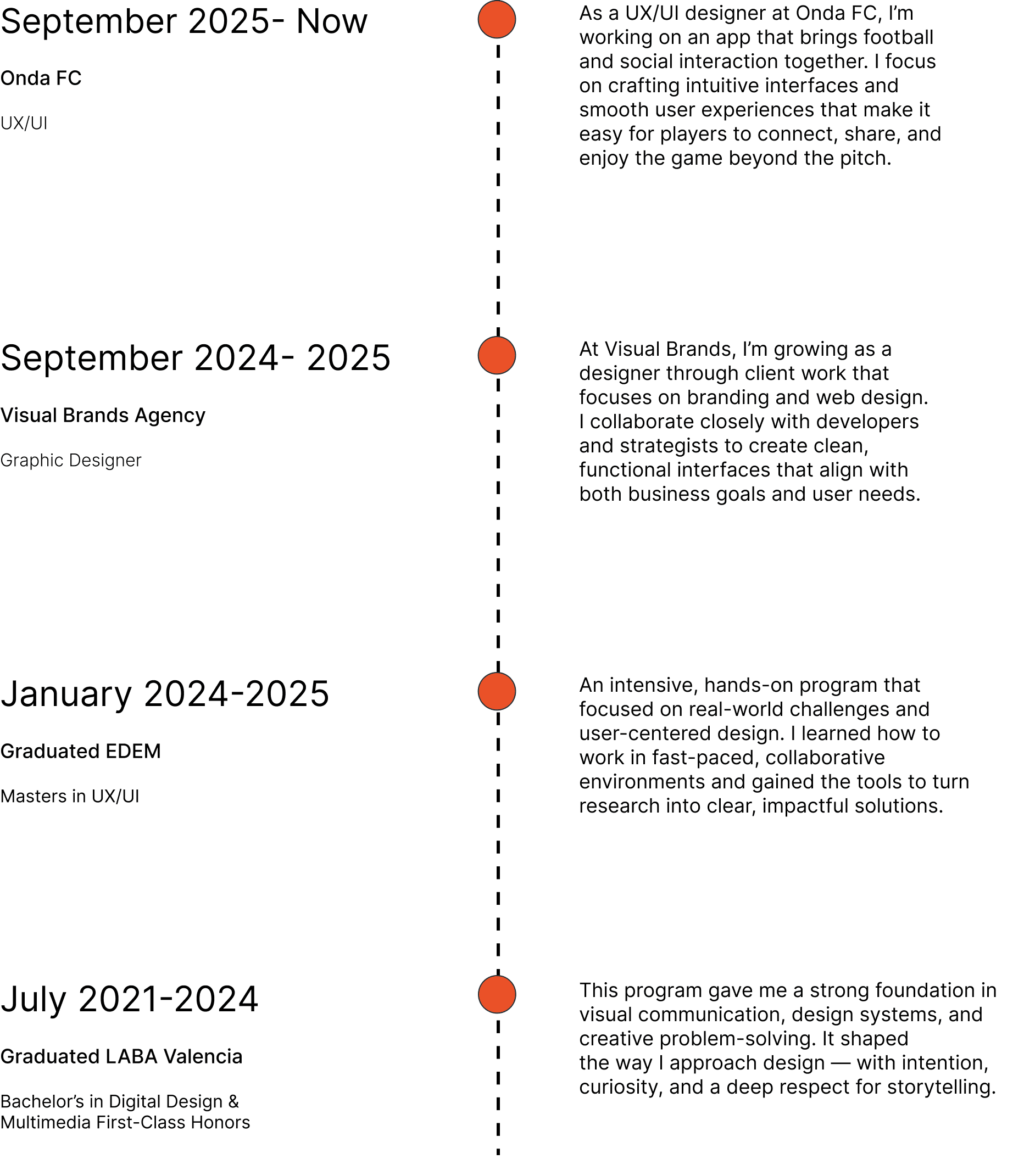 A bilingual UX/UI designer with a Bachelor’s degree in Digital Design and Multimedia. While my main focus is UX/UI, I also have experience in graphic and packaging design, giving me a well-rounded visual perspective. Growing up in the U.S. with Venezuelan parents, I bring a global outlook and cultural fluency that enrich my design approach.