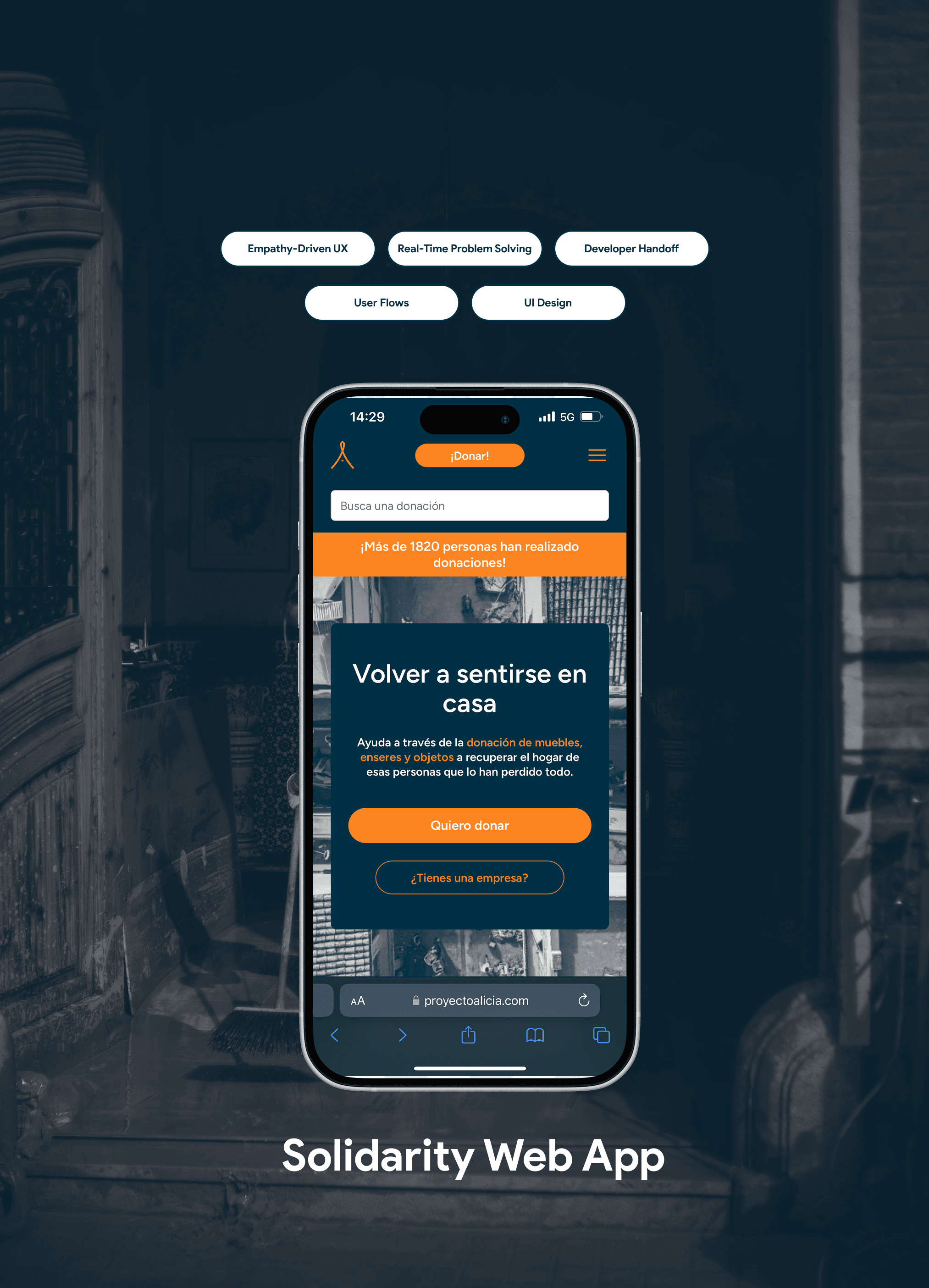 We built Proyecto Alicia, a simple donation Webapp connecting those who lost everything with people ready to help. Fast, accessible, and community-driven, it made furnishing a home as easy as a few clicks.